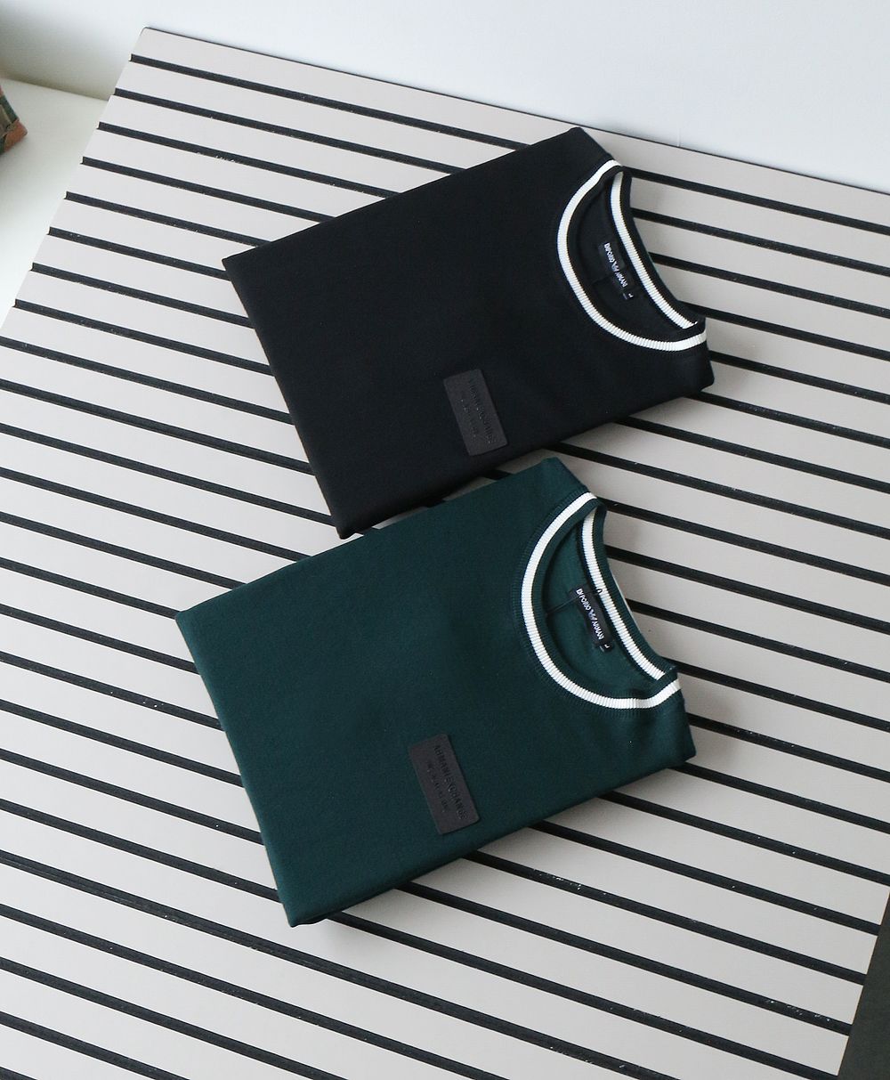 Men’s Premium Knitted Solid Full Sleeves Crew Neck T-Shirt with Piping – Contemporary Fit